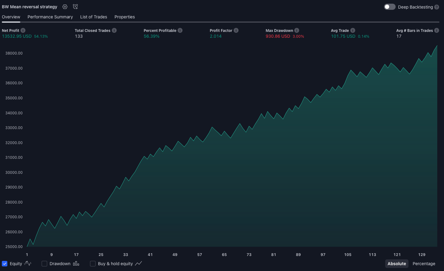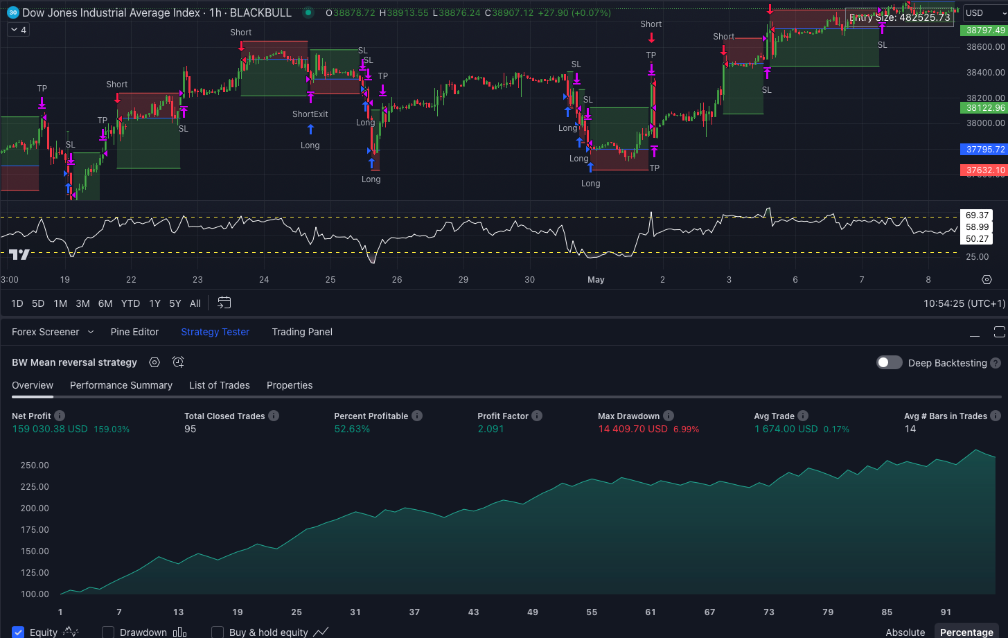 This strategy times the bottom of markets and profits on the way up. Favoured by the most successful hedge fund of all time (The medallion fund). This strategy applies straight onto your trading view charts and comes with our private groups and 1-1 mentorship from the people who use this! Free signals alongside the mean reversion strategy.